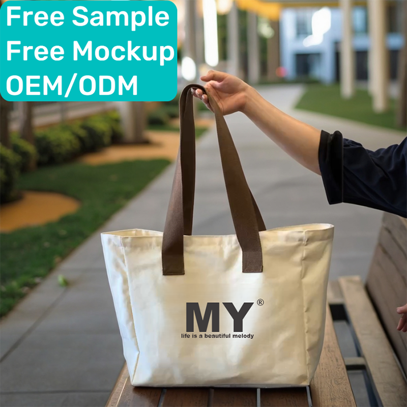 Item: Custom Logo Bags Portable Reusable Cotton Canvas Material Oem Unique Tote Bags for Women With Brown Cotton Webbing Handles