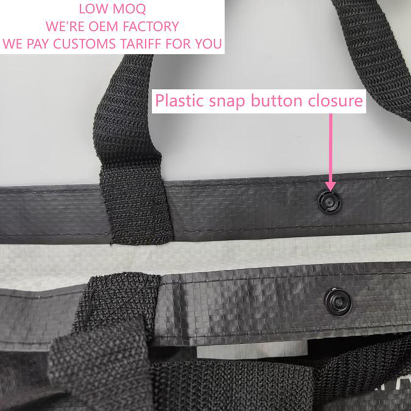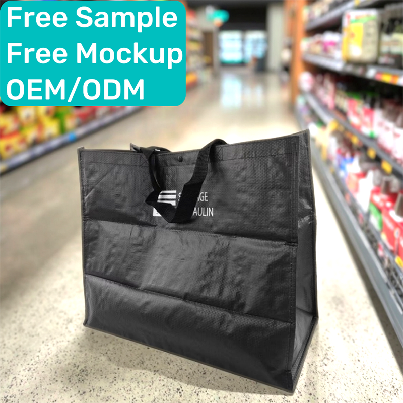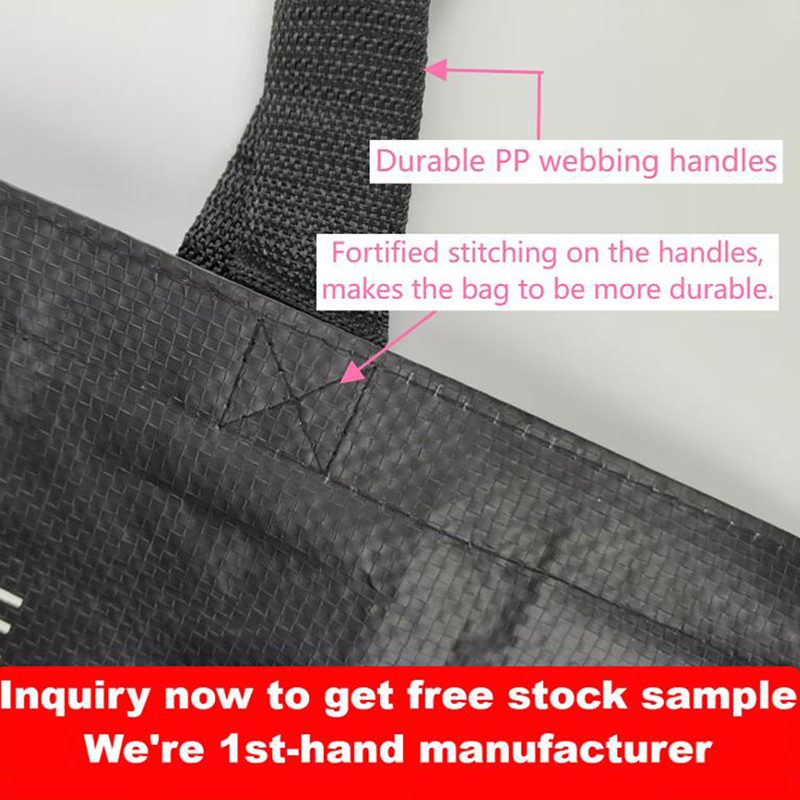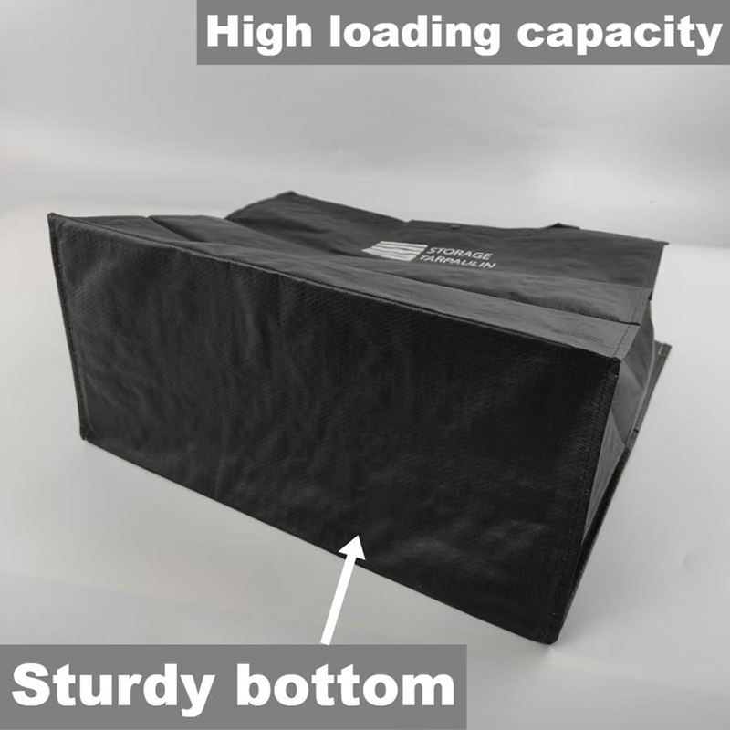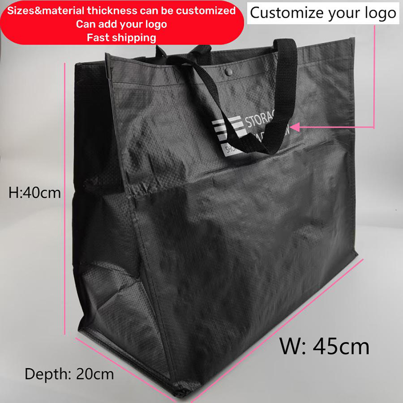 Item: Custom Logo PP Woven Fabric Tote Large Capacity Black Reusable Folding Shopping Bag for Supermarket Use or Gift Giving